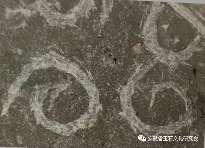 经过青铜时代以后,生产工具的发展进入了它第三个大的发展阶段,即铁器时代,或者说叫古典机具时代。在我国,铁器的出现可以追溯到三千三百年前的商代中期,随着铁器的发明和运用生产力得到很大的提高,古人制玉采用人工脚踏轮转铁质砣具,古玉制作工艺得到突飞猛进的发展,但依然受生产能力的约束,为我们呈现明显的时代特征,从图1、图2我们通过放大可以清晰的看到,谷纹由于坯料在砣具下不断的转换角度,形成的圆弧线是一个一个短小的线组合而成的。图3自然光下肉眼观察给人非常灵动,富有生机勃发的感受。可见古人的性灵赋予,那是一种极具神韵的美感。